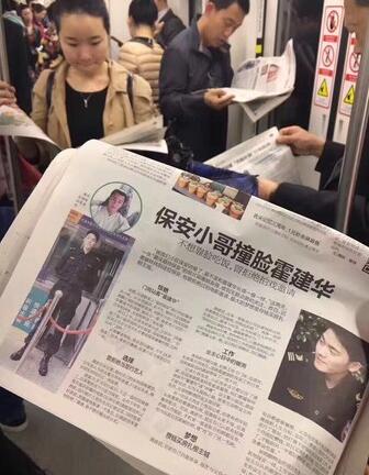 近期大陆有报纸刊称“保安小哥撞脸霍建华”引起讨论